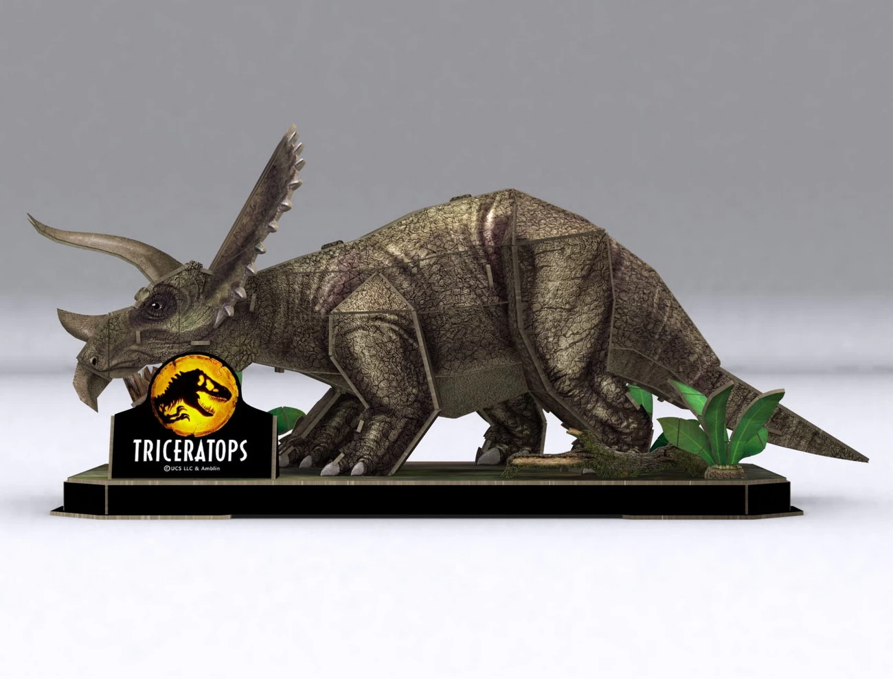 3D Puzzle des Triceratops aus der Film-Trilogie Jurassic World mit Dioramaplatte