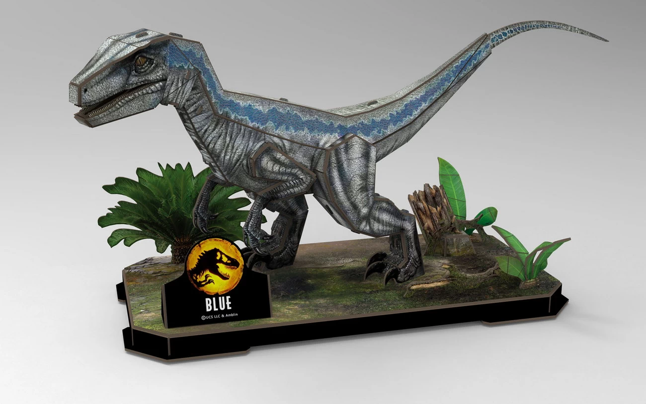 3D Puzzle des Velociraptors ‚Blue‘ aus der Filmtrilogie Jurassic World mit Dioramenplatte