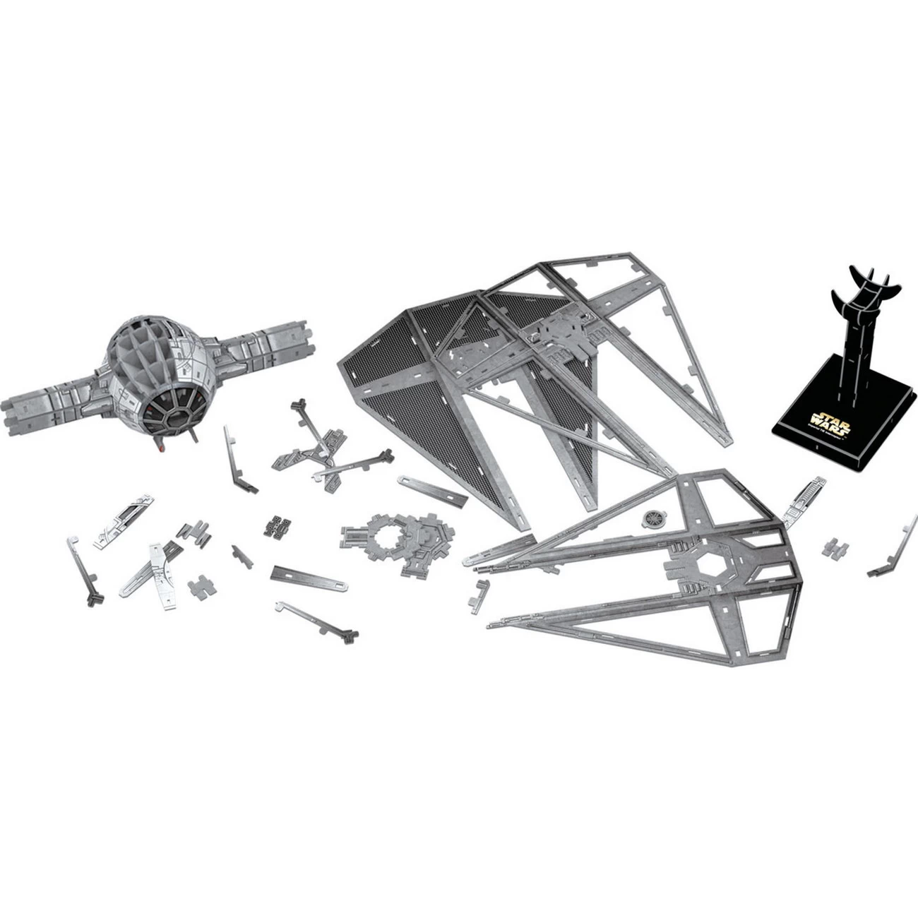 Kartonmodellbausatz des Star Wars TIE Interceptor IN Fighter bestehend aus 129 Teilen.