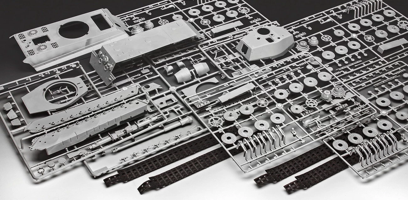 Tiger II Ausf.B (Henschel Turm) Modell (03249): – Maßstab: 1:35 – Länge: 29,3cm – Schwierigkeitsgrad: 4 von 5 – Einzelteile: 331