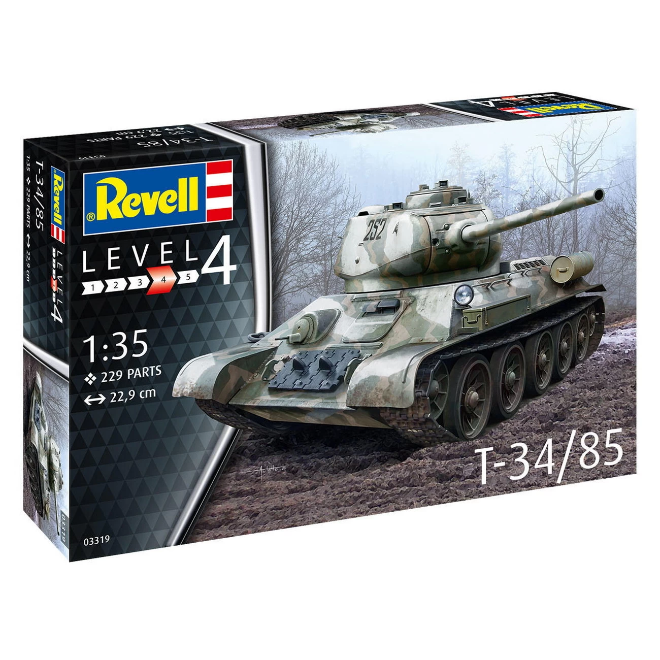 Modellbausatz eines der berühmtesten Panzer des Zweiten Weltkriegs, des sowjetischen T-34. Er vereinte in für damalige Verhältnisse hervorragender Weise die Faktoren Panzerschutz, Feuerkraft und Beweglichkeit. Den T-34/85 kennzeichnet seine neue Kanone mit einem Kaliber von 85 mm.