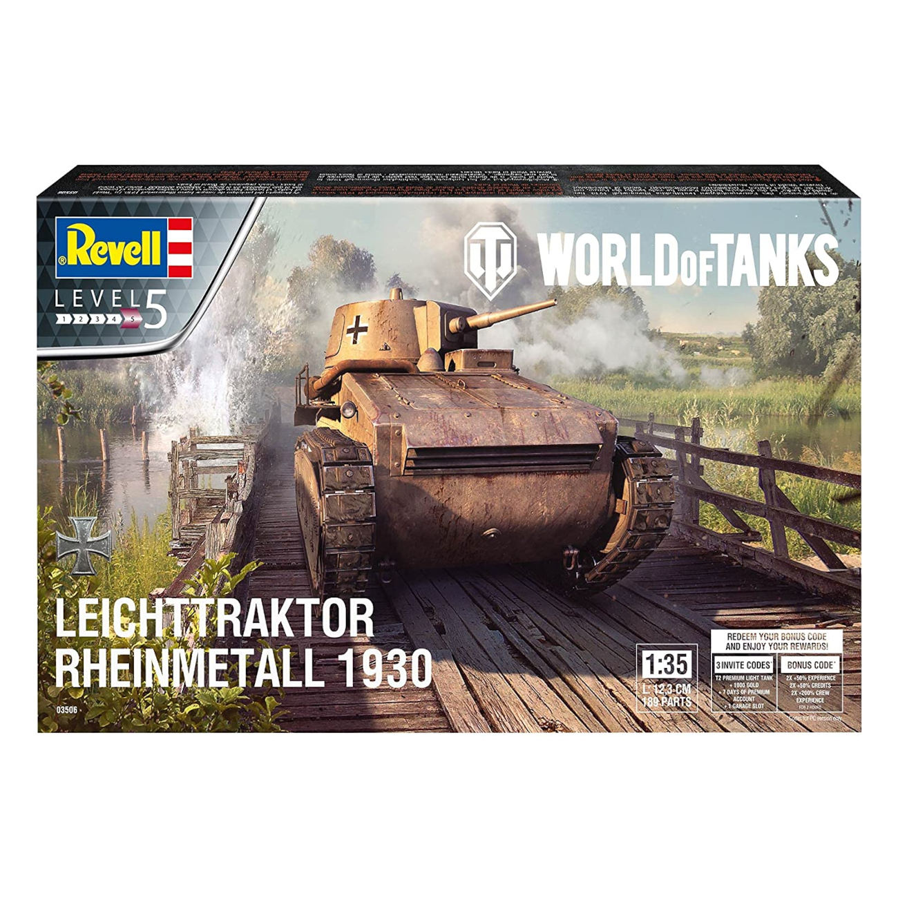 Daten des Modell Leichttraktor Rheinmetall 1930 – World of Tanks (03506): – Maßstab: 1:35 – Länge: 12,3cm – Schwierigkeitsgrad: 4 von 5 – Einzelteile: 186
