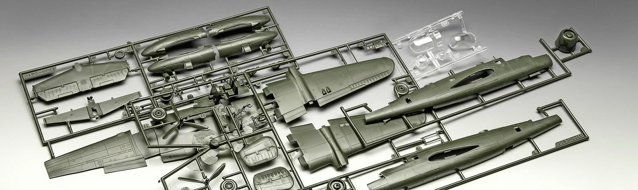 Daten des Modell B-25 Mitchell (03650): – Maßstab: 1:72 – Länge: 22,3cm – Höhe: 6,5cm – Spannweite: 28,6cm – Schwierigkeitsgrad: 2 von 5 – Einzelteile: 44