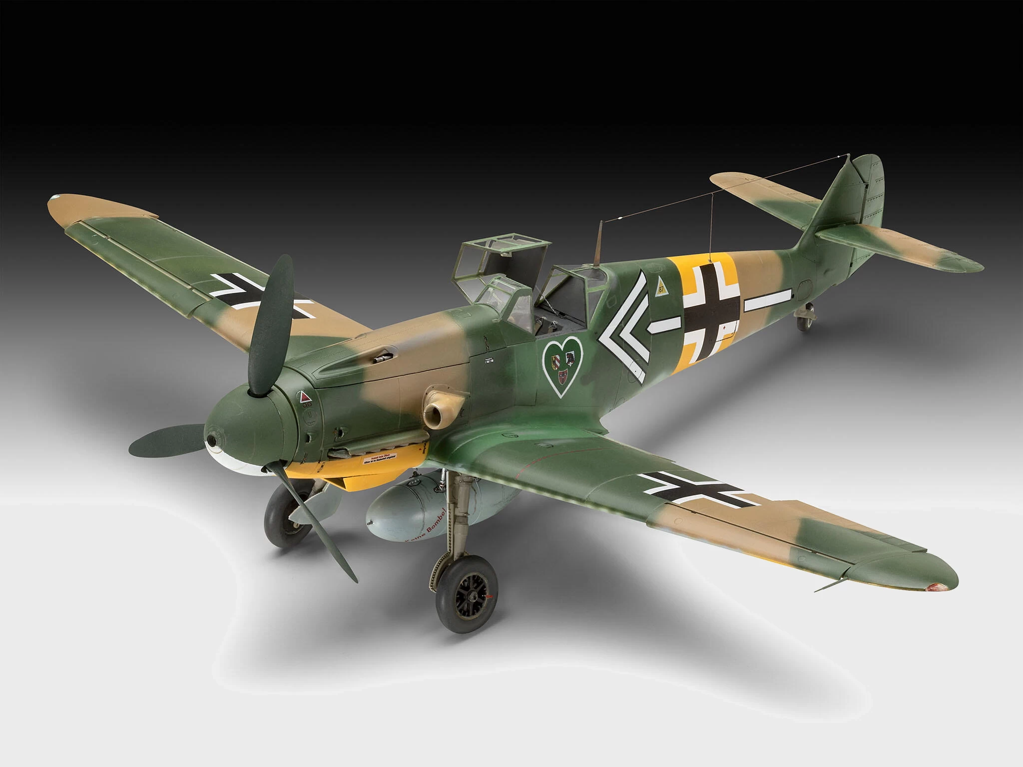 Modellbausatz der legendären Messerschmitt Bf109 in der frühen G-2/4 Ausführung. Diese Variante kam mit dem neuen DB 605-Motor auf fast allen Kriegsschauplätzen zum Einsatz. Für das neue Triebwerk musste jedoch der Rumpf teilweise umkonstruiert und die Struktur verstärkt werden.