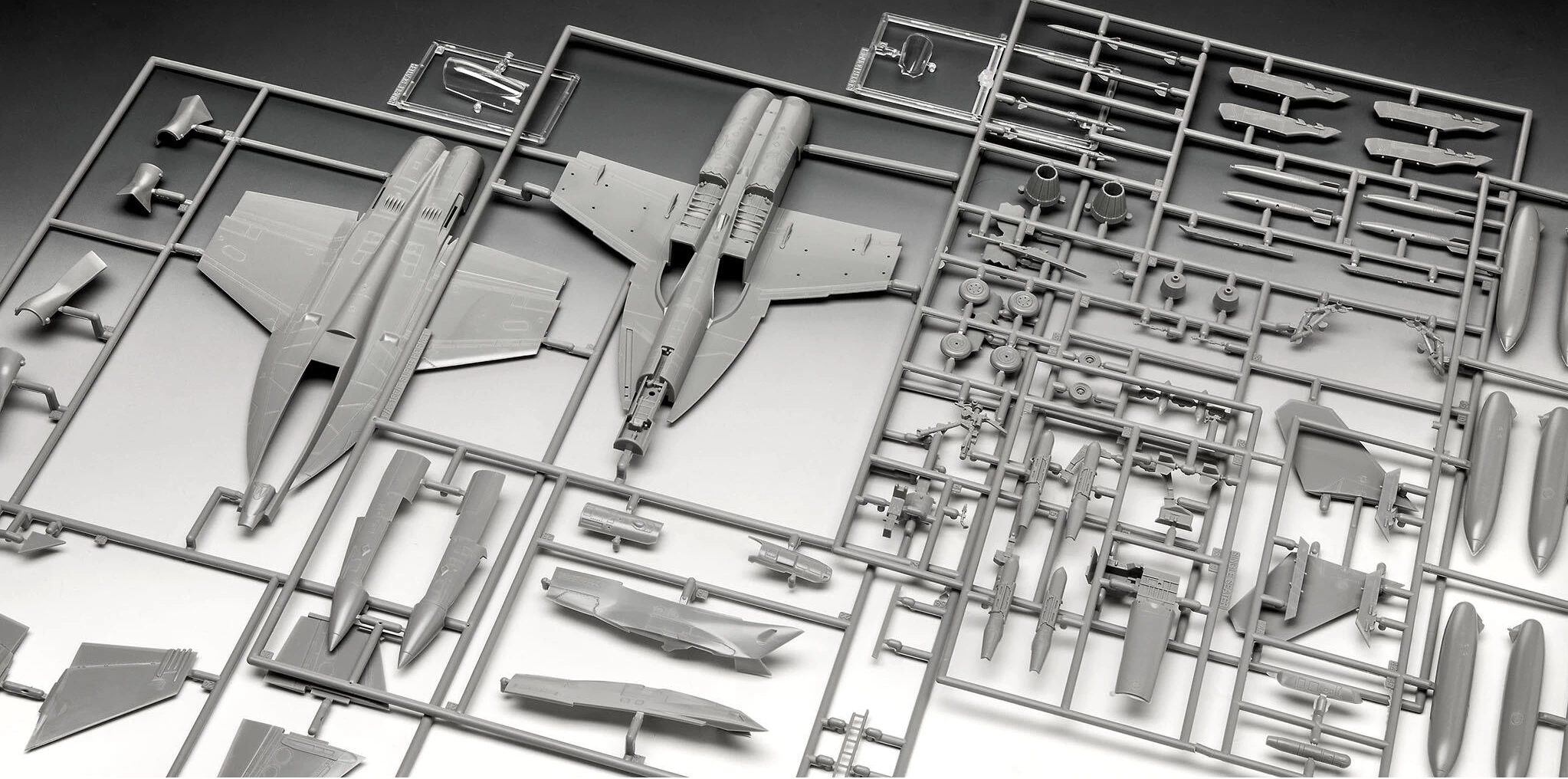 Modellbausatz der populären F/A-18 Super Hornet. Als F-Modell verfügt sie wie die Tomcat über ein doppelsitziges Cockpit, in dem hinter dem Piloten ein Waffensystemoffizier für den taktischen Einsatz der Bordelektronik, den Waffeneinsatz und die Navigation zuständig ist.