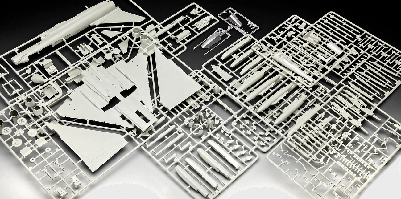 Daten des Modell Eurofighter Typhoon „BARON SPIRIT“ (03848): – Maßstab: 1:48 – Länge: 36,8cm – Höhe: 10cm – Spannweite: 39,5cm – Schwierigkeitsgrad: 5 von 5 – Einzelteile: 192