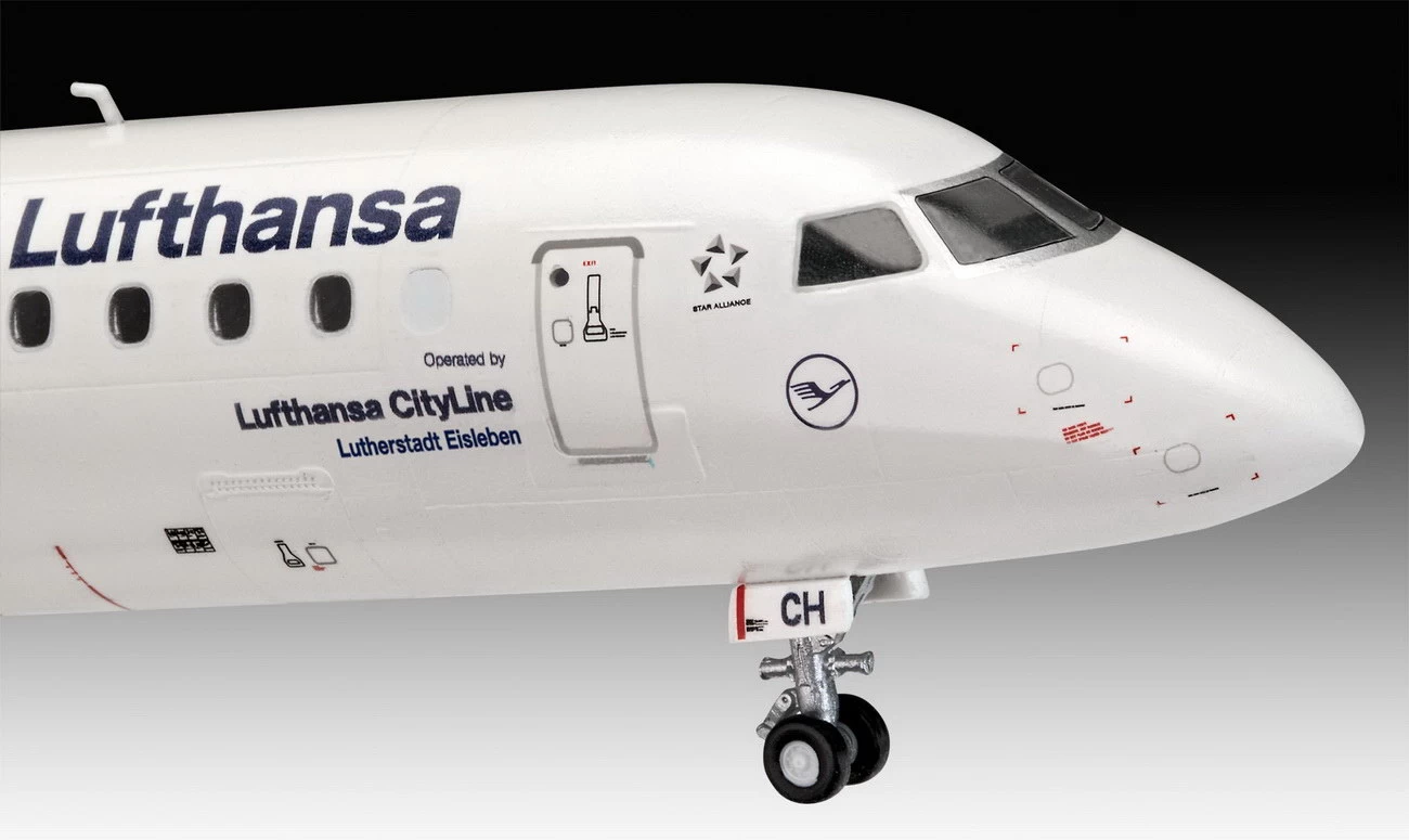 Mit der Embraer 190 setzt Lufthansa auf den zweitgrößten Typ aus der Familie von Kurzstreckenflugzeugen des brasilianischen Herstellers. Wie alle Flugzeuge der Lufthansa wird auch die Embraer-Flotte sukzessive im neuen Design der Airline in die Luft gehen. Modellbausatz der ERJ 190. Die Lufthansa setzt das erfolgreiche Kurzstreckenflugzeug auf innereuropäischen Routen ein.