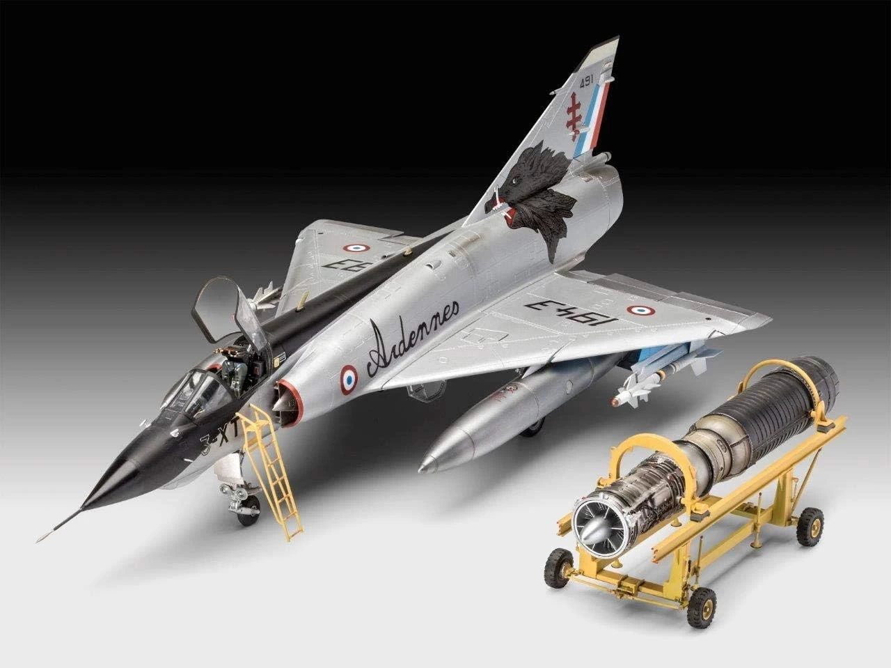 Daten des Modell Dassault Aviation Mirage III E/RD/O (03919): – Maßstab: 1:32 – Länge: 46,5cm – Höhe: 14cm – Spannweite: 25,6cm – Schwierigkeitsgrad: 5 von 5 – Einzelteile: 366