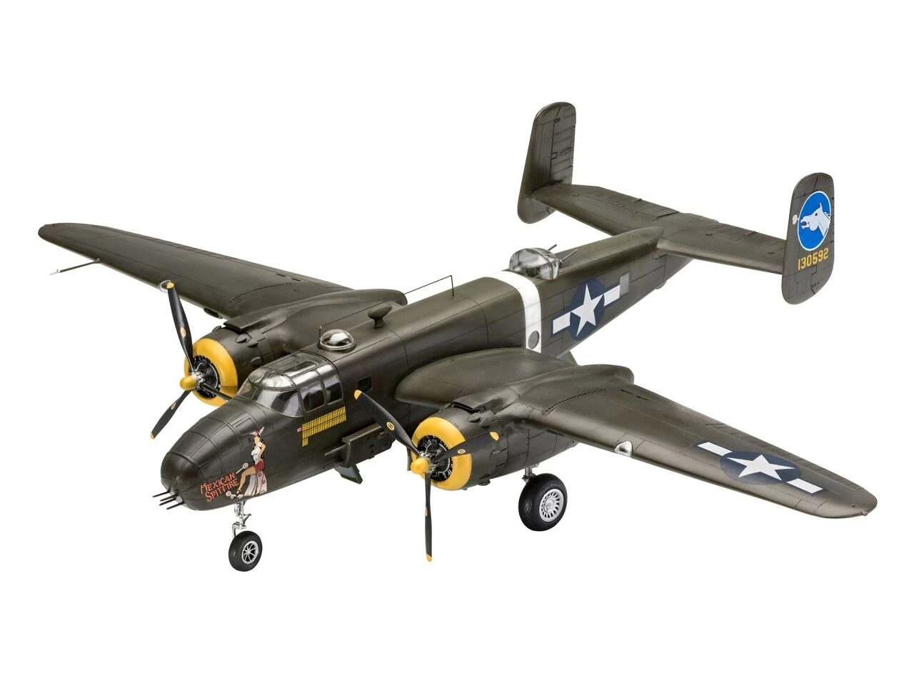 Die B-25 „Mitchell“ war ein zweimotoriger, mittelschwerer Bomber der US Army Air Force im Zweiten Weltkrieg. Die in Kansas City gebaute D-Version zeichnete sich durch Wright R-2600-13-Motoren und Navigatorkanzel aus. Außerdem wurde die Bugbewaffnung um ein bewegliches und ein starres 12,7 mm-MG verstärkt.