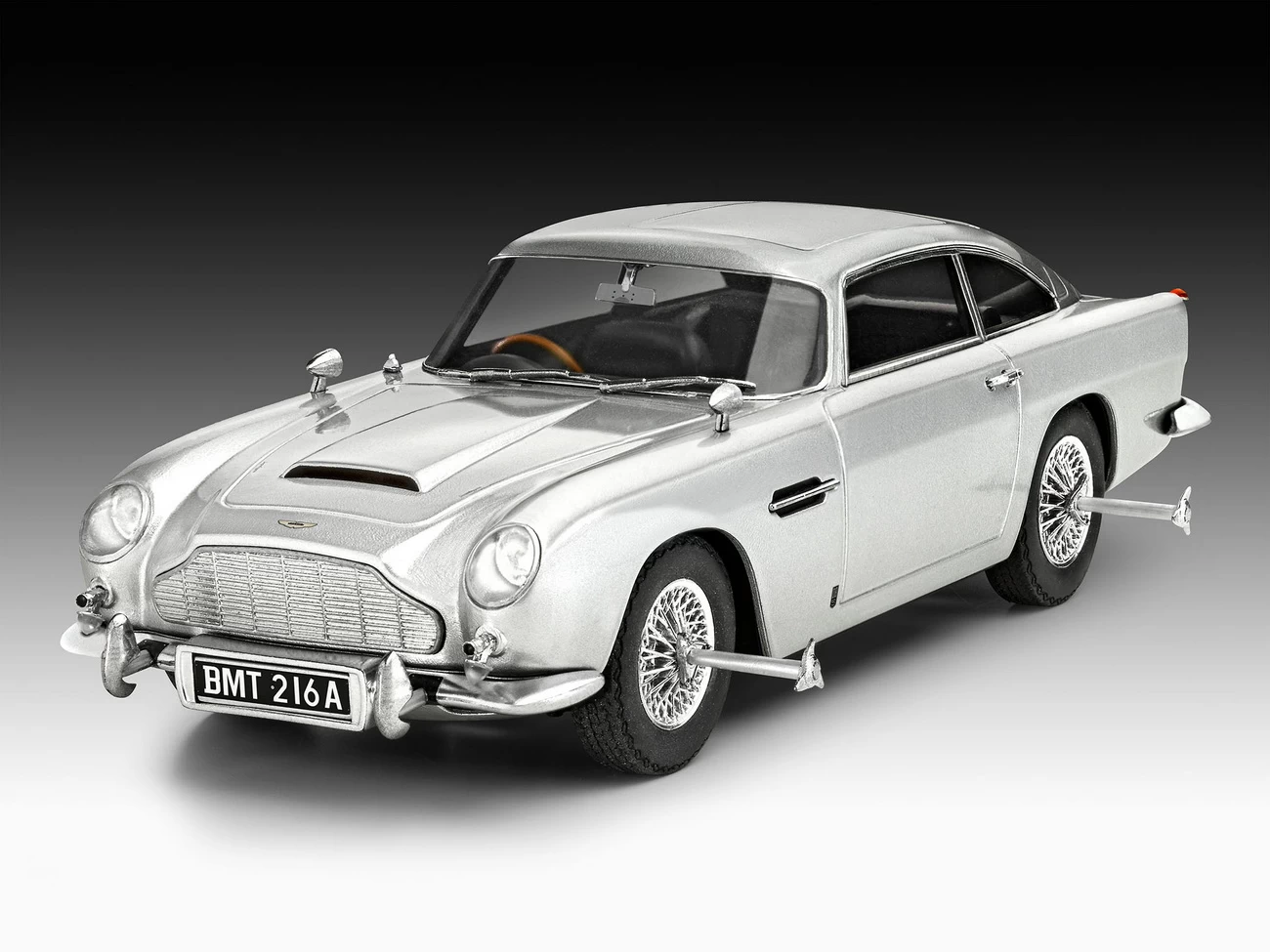 Daten Geschenkset James Bond Aston MartinDB5 easy-click: Baujahr: 1963 – 1965 – Herkunftsland: Großbritannien – Länge: 4,57m – Breite: 1,68m – Höhe: 1,32m – Antriebsleistung: 286 PS – Höchstgeschwindigkeit: 229 km/h – Gewicht: 62 t – Gewicht: >1.502 kg (Sportwagen)