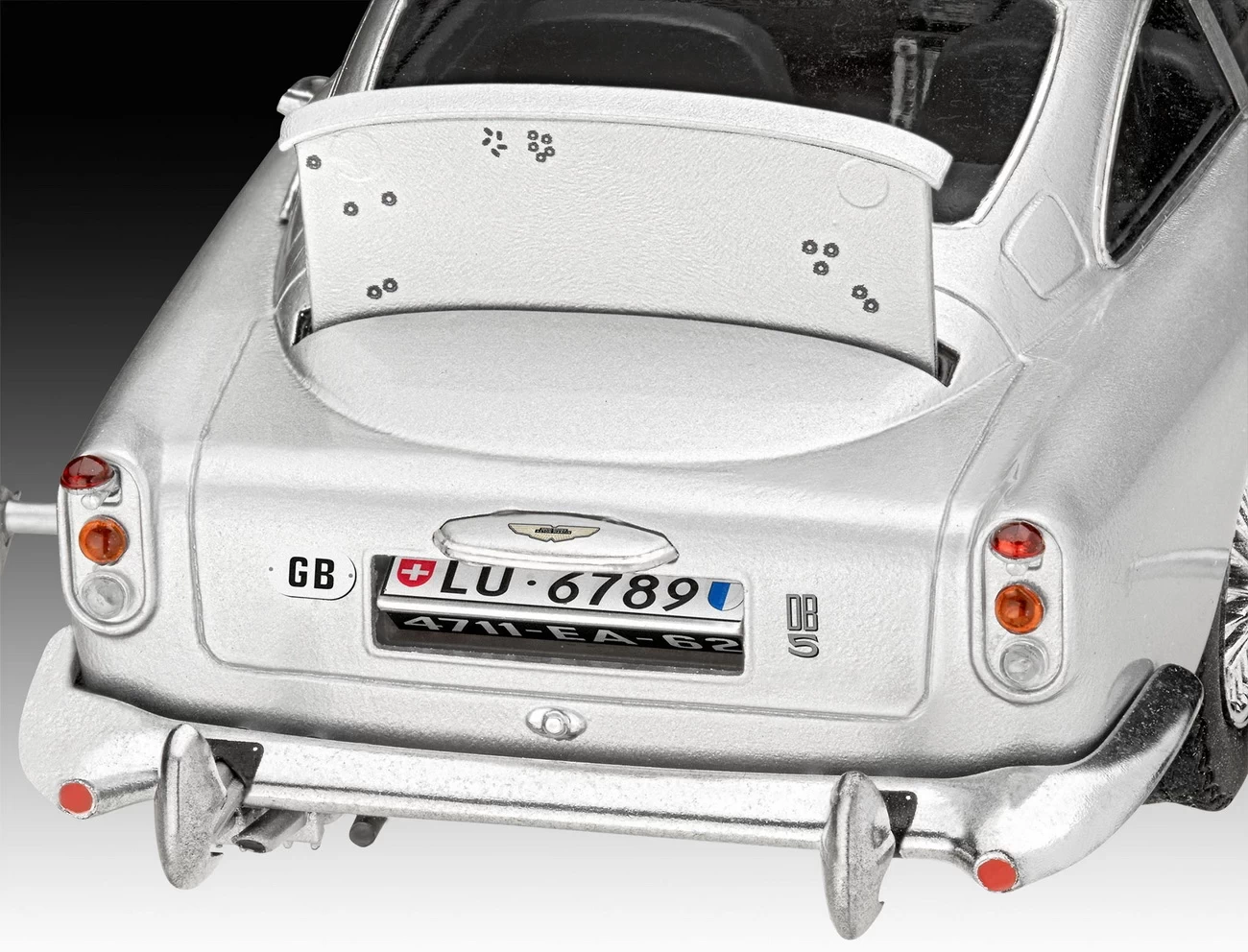 Daten des Modell Geschenkset James Bond Aston MartinDB5 easy-click (05653): – Maßstab: 1:24 – Breite: 9,9cm – Länge: 20,6cm – Höhe: 5,5cm – Schwierigkeitsgrad: 2 von 5 – Einzelteile: 122
