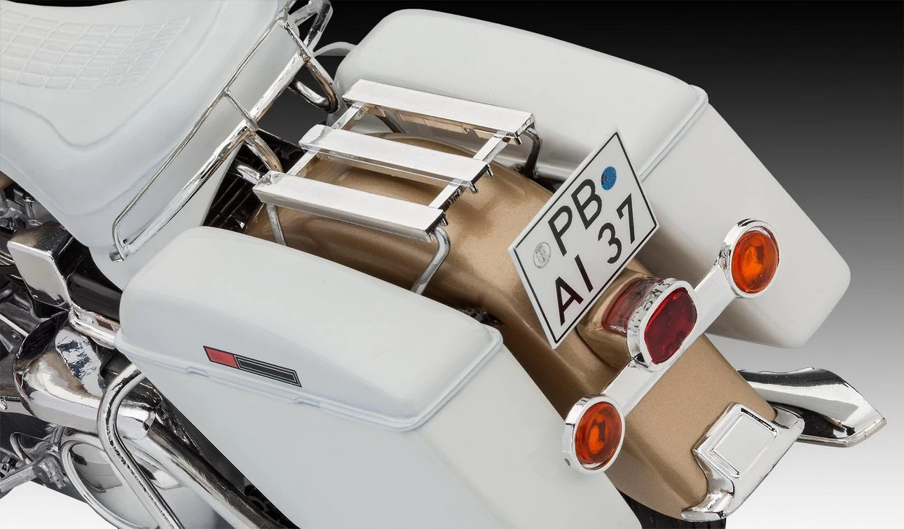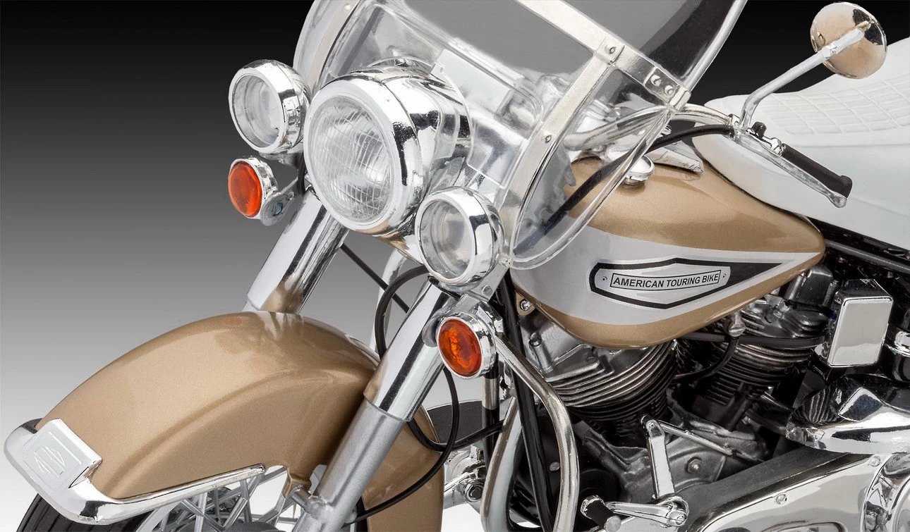 Anspruchsvoller Modellbausatz mit sehr vielen Chromteilen zu dem US Motorrad, das durch seine Bequemlichkeit und sehr gute Straßenlage überzeugt und trotz seiner beachtlichen Größe sehr gut zu handhaben ist.