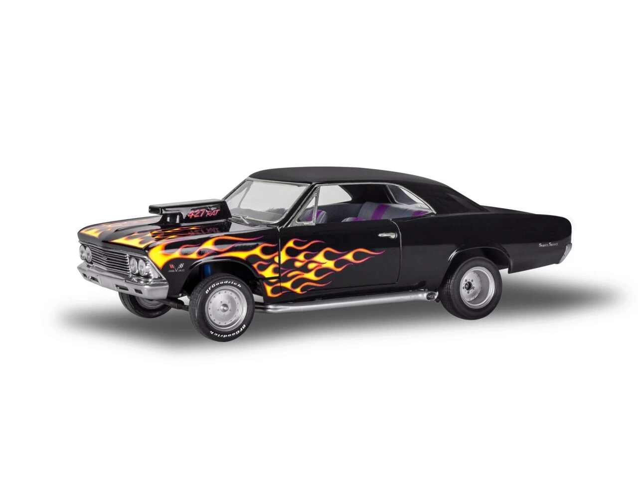 Die goldenen Tage der Supersportwagen sind für immer vorbei, viele der potenten Maschinen aus den sechziger Jahren wurden von ihren einfallsreichen Besitzern aktualisiert und verbessert. Dieser 1966er Chevy® Malibu™ ist eine hochgradig modifizierte Version des berühmten SS396 Chevelle™ und verfügt über eine leichte Glasfaser-Flip-Frontpartie.