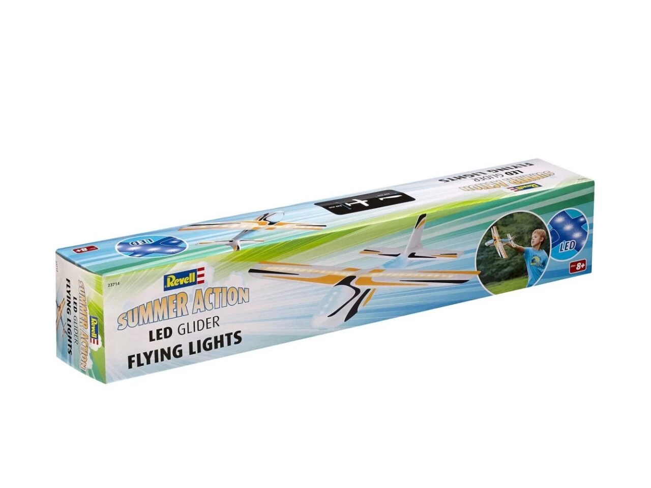 Der Flying Lights Wurfgleiter ist ausgestattet mit in den Rumpf und Tragflächen integrierten LEDs und bietet beste Flugeigenschaften. Die bunten LEDs sorgen vor allem im Dunkeln für tolle Beleuchtungs-effekte. Der aus robustem EPO-Schaum gefertigte Gleiter wird in Sekunden zusammengesteckt, ohne zu kleben!