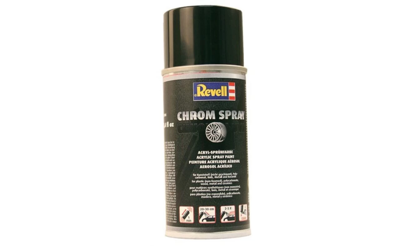 Gib deinem Modell den letzten Schliff mit dem Revell Chrome Spray. Denn mit dem einfach anzuwenden Chrome Spray kannst du ganz einfach alle Chromteile hochwertig veredeln – für ein noch realistischeres und detaillierteres Aussehen des Modells. Das Revell Chrome Spray ist für fortgeschrittene Modellbaufans mit einem besonders hohen Anspruch an das fertige Modell ein Muss – die Ergebnisse des Chrome-Finishs sind beeindruckend.