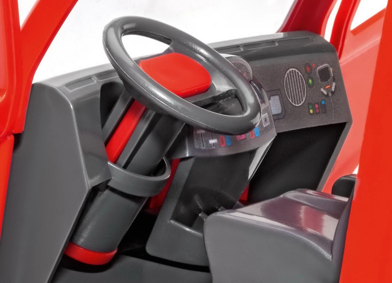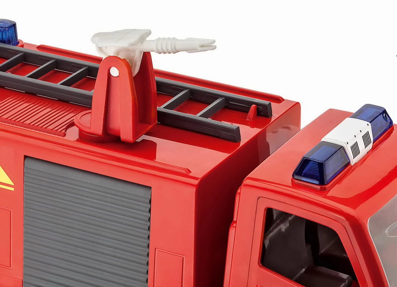 Rücke mit deinem selbst gebauten Feuerwehrwagen zum Einsatz aus. Mit der drehbaren Löschkanone und der Leiter bist du perfekt ausgestattet. Hinter den beweglichen Klappen hast du zwei Pylonen und einem Feuerlöscher als weitere Ausrüstung dabei.
